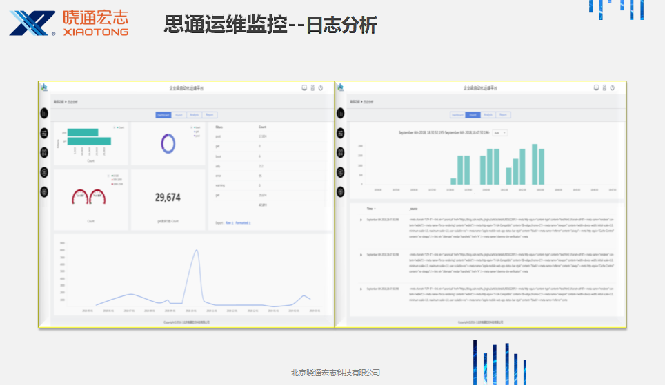 ? ? ? 今年Zabbix峰會移施北京,已于2019年11月29-30日順利召開。曉通宏志在大會上,推出思通運維最新方案,在Zabbix基礎上實現Elastic相關功能,完善基礎監控和業務監控的升級,在日志分析、流量分析上,為用戶提供可視化報表,運行健康、安全狀態一目了然。