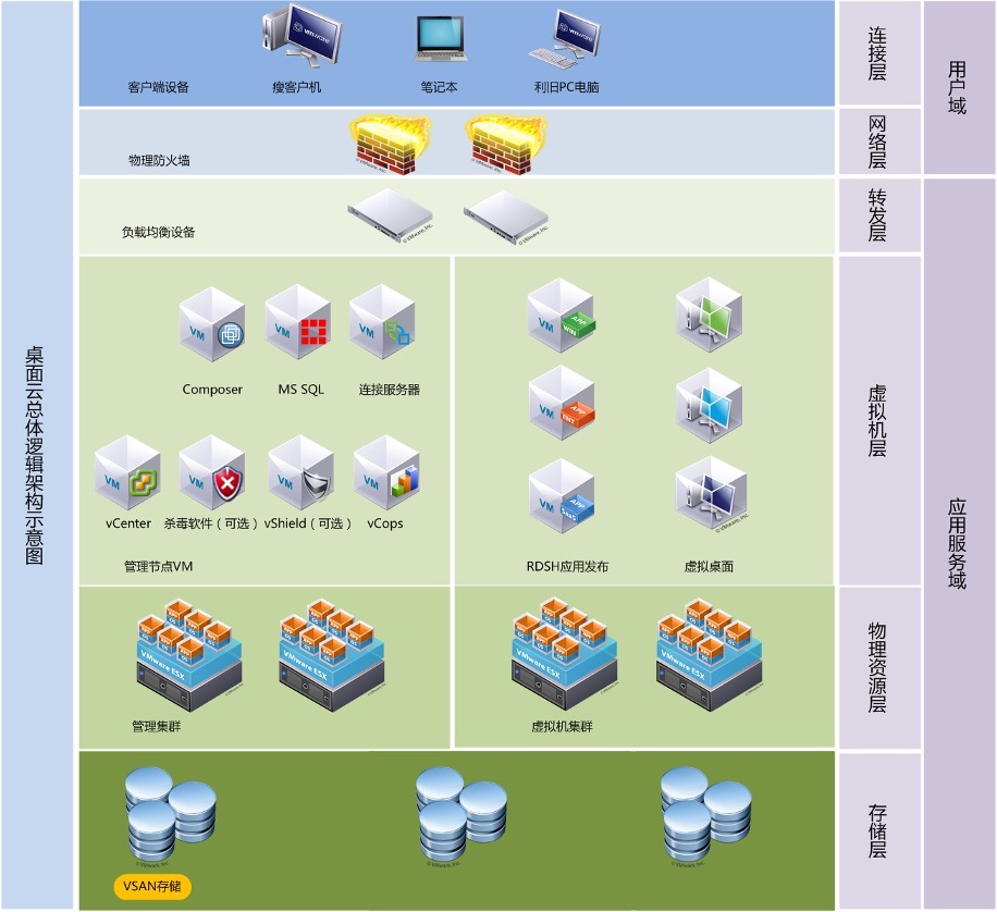 ? ? ? ??3、本項(xiàng)目采用VMware平臺(tái)統(tǒng)一管控虛擬機(jī),簡(jiǎn)化運(yùn)維工作;提升工作效率。